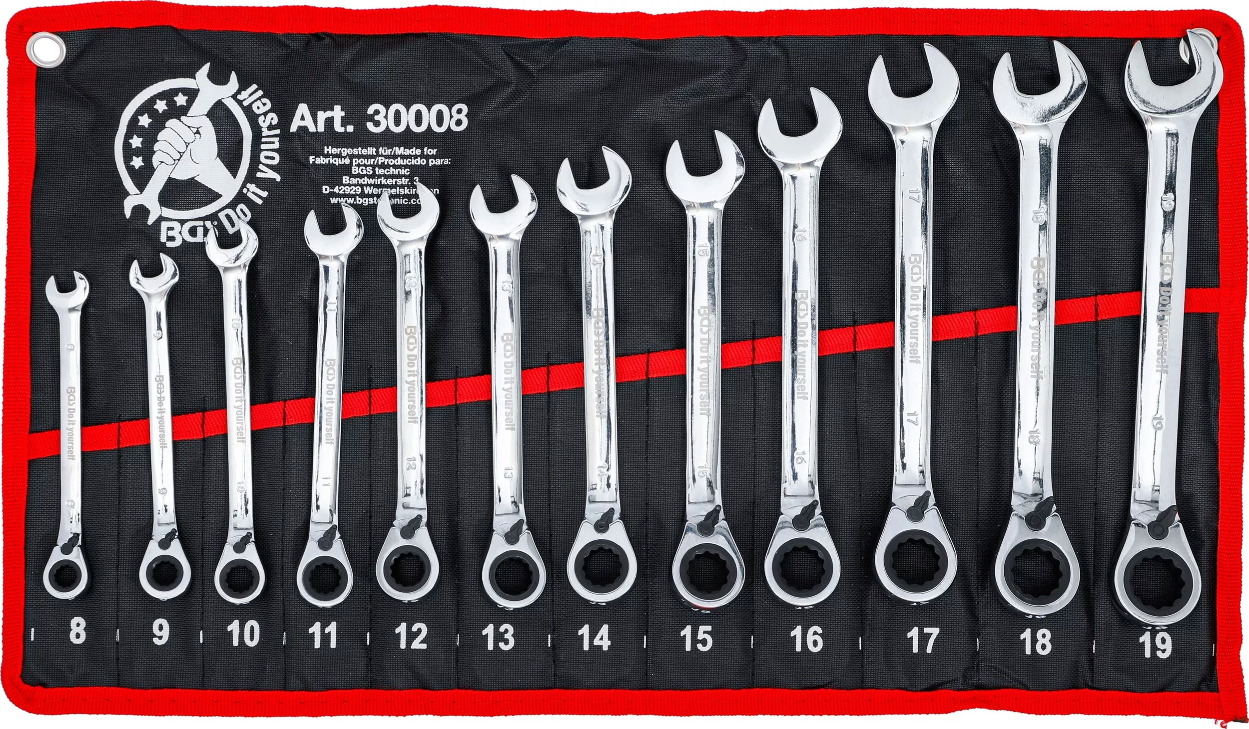 BGS Do it yourself 9-30008 racsnis csillag-villáskulcs készlet, irányváltós, metrikus, 12 részes