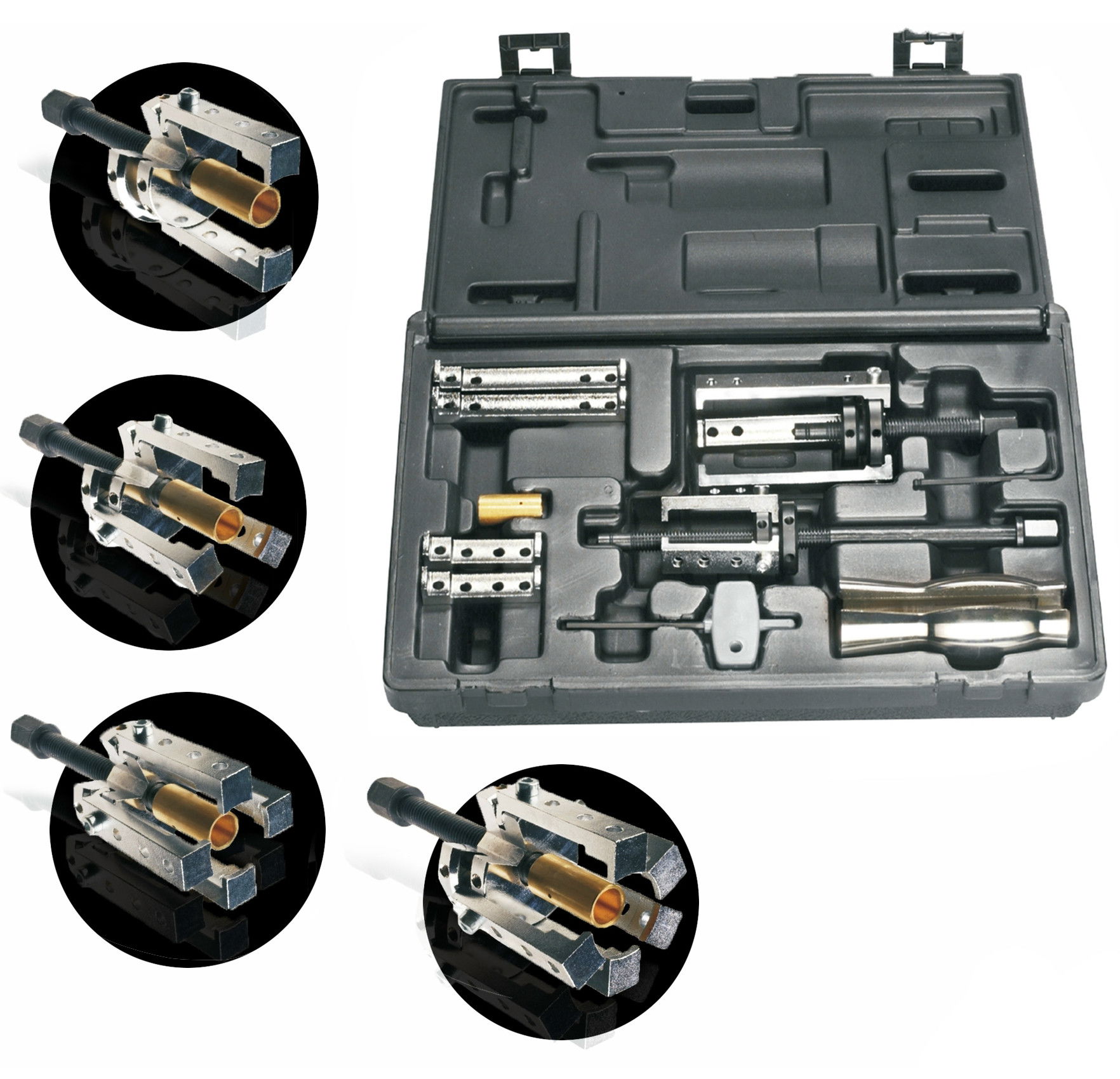 Alkalmas minden olyan gépkocsihoz, melynél a csapágy, ablaktörlő, szervó kormány pumpa, légkondíció részek, apróbb csapágyak, perselyek leszedése nehézkes.